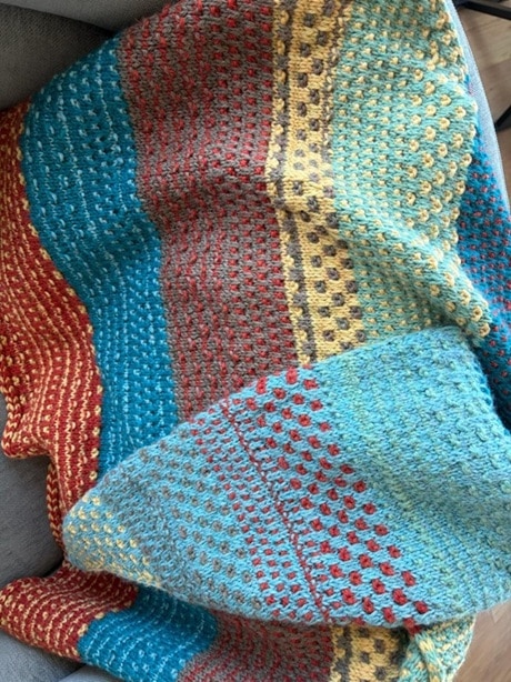 I wanted to get the foundation right, so the colour gradients would work the way I hoped. Instead of prioritizing pace, I had to slow down and deeply pay attention. Once I did that, everything changed. What at first was uncomfortable and challenging, I felt more confident and capable. Instead of going backwards, I got traction and saw the scarf grow to its completion, much to my delight!
