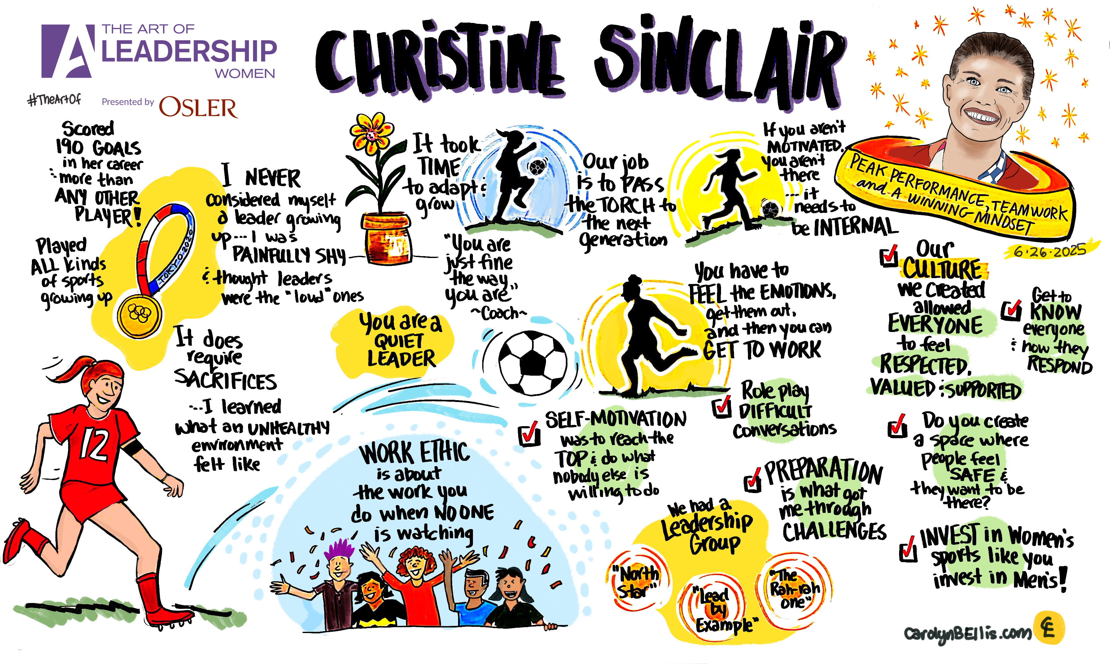 - “A work ethic is about the work you do when no one is watching.” Christine Sinclair