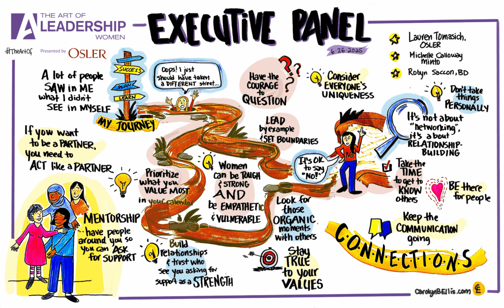 At The Art of Leadership Women 2025 in Toronto, around 2,000 leaders gathered to hear from influential voices who brought candor, courage, and wisdom to the stage. My team and I were onsite translating the day’s biggest ideas into large-scale visual summaries in real time. The energy in the room was electric—attendees were engaged, inspired, and eager to take notes from female leaders who are reshaping how we think about work, success, and human connection.